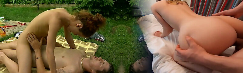 Beautiful short haired fantastic and hot cock-squeezing pussy horny camper girl gets fucked hard by her big dick friend outdoors