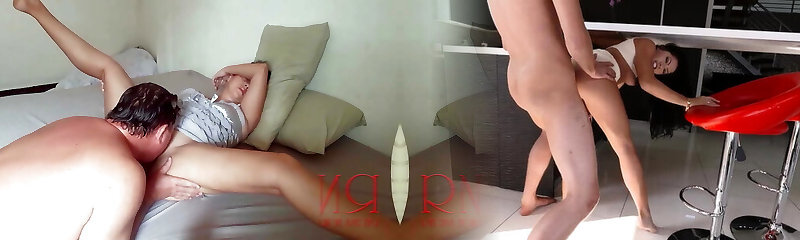 Fucked a hotty hard in the kitchen in black sexy underwear in her mouth and pussy