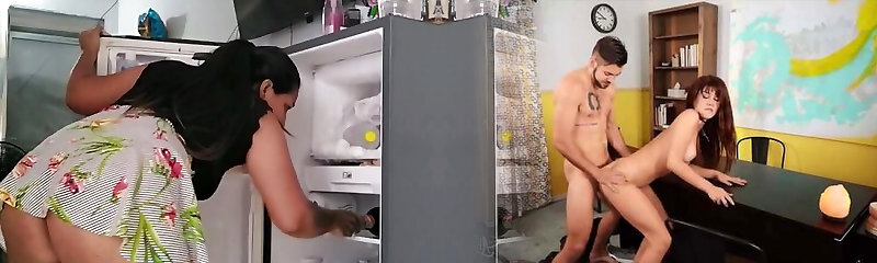 Horny guy fucks cleaning lady Giselle Palmer behing his wife's back