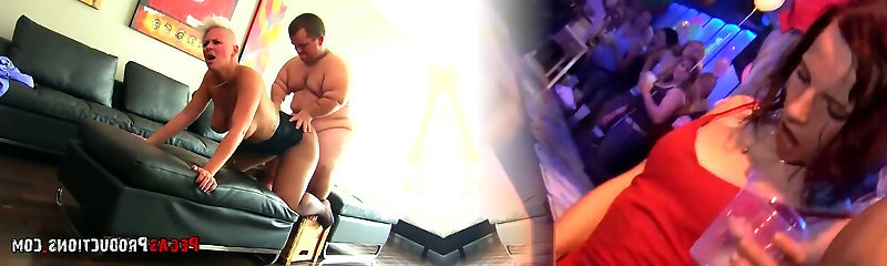 Low budget porn of chubby girls with nice globes getting fucked doggie by nerd