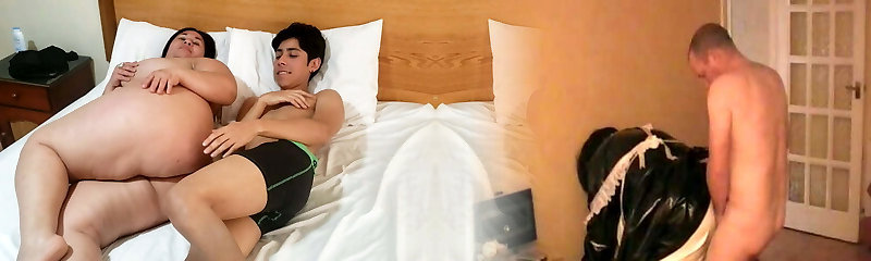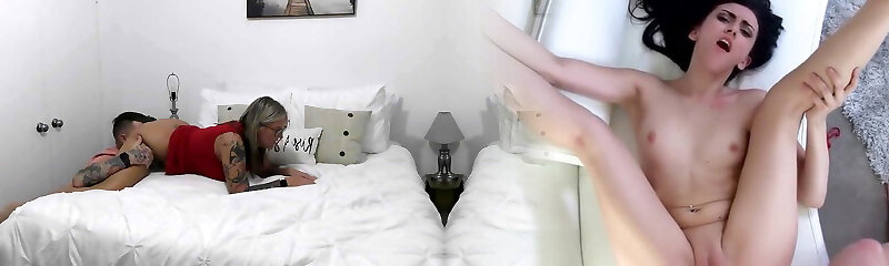 Stepmother shares the bed with her son and very horny lets her stepson fuck her cuckold husband shares wifey with sonny