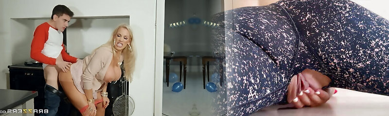 Mature plastic blonde Rebecca More gets a tough plumb in the kitchen