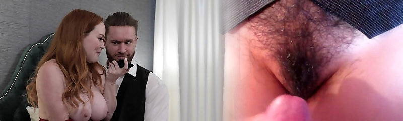 Red-haired busty MILF in lingerie rides cock in Point Of View close-up