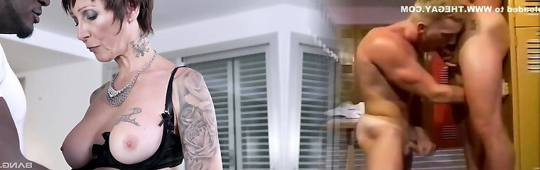 Fantastic looking cougar Lou Pierce peels off and plays with saggers