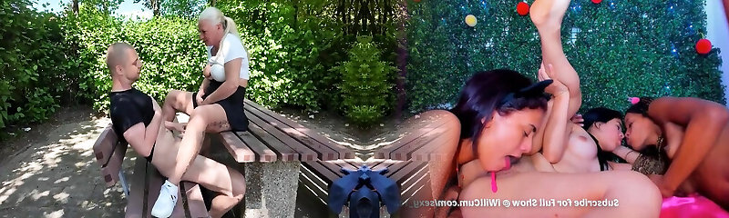 Lily sucks a humungous shaft in a park. A mature platinum-blonde takes a golden shower, drinks urine and blows bubbles with a macho dick.