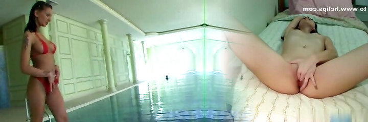 A duo of slim brunette ladies Whitney and Victoria have hot sex in pool