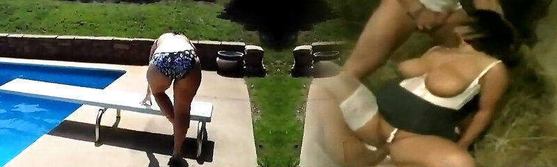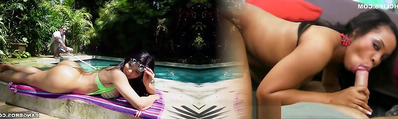 Skinny Black-haired In Hardcore Pool Fucking Threesome
