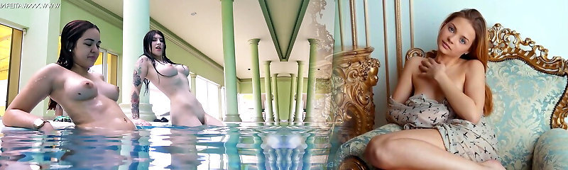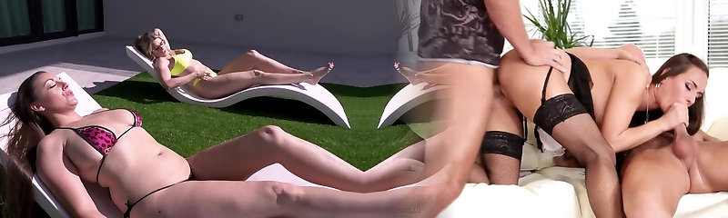 Two hot young lezzies have fun by the pool With Vanessa Cage