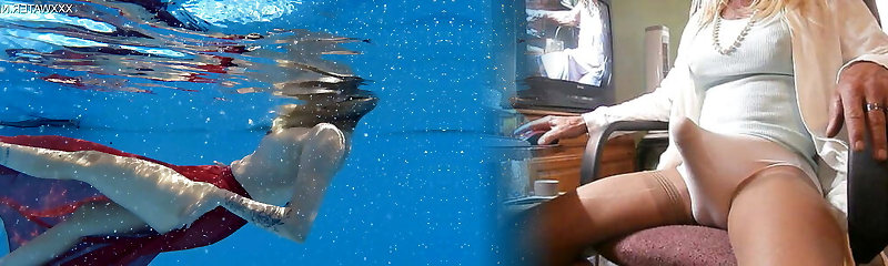 Huge natural boobies and shaved pussy underwater flashing by hot granny MariaOld