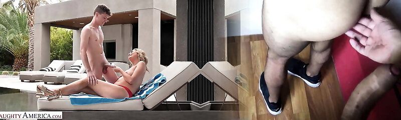 Gorgeous blonde Angel Wicky plows hard with a BBC next to the pool