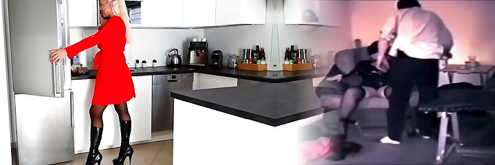 Bald dude romping a blond secretary in the office