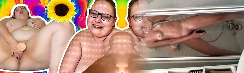 Pigtailed obese teen doing the 5 minute dildo fuck cower challenge
