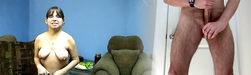Fat hairy housewife with saggy natural tits wants a money-shot on her big belly