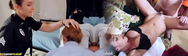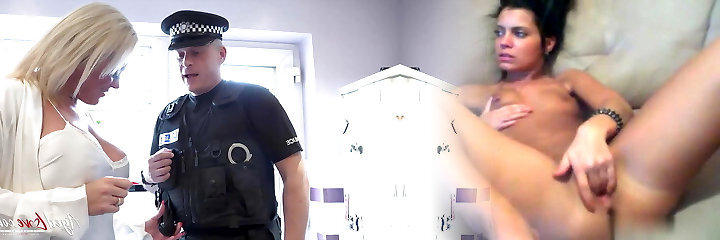 Super-hot police woman fucks a dude while horny blonde masturbates