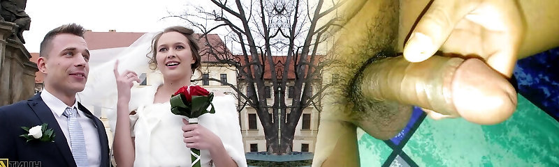 Light-haired BBW bride fucks