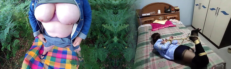 Voyeur spies on fat mummies outdoors. Mature lesbians behind the scene.
