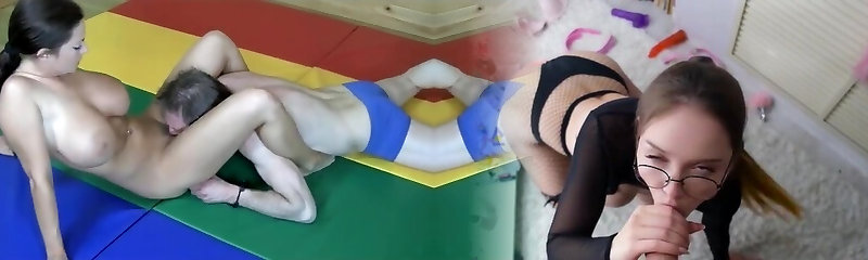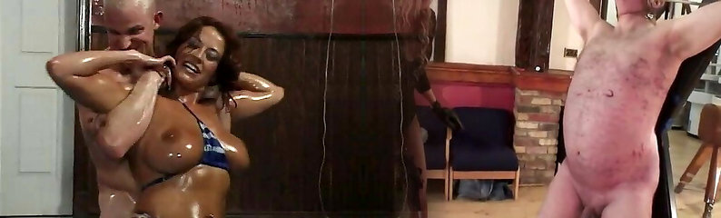 Sexy oil wrestling and hardcore fuck session for blonde man